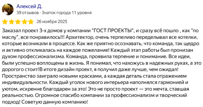 Здравствуйте, меня зовут Вадим. Я руководитель компании «Гост проект». Наша компания занимается проектированием и дизайном домов и коттеджей в Москве и МО более 5 лет. В компании работают только профессиональные специалисты с опытом работы более 10 лет. Зачастую архитекторы не имеют строительного опыта, что приводит к ошибкам и экономически необоснованным решениям в проектах.