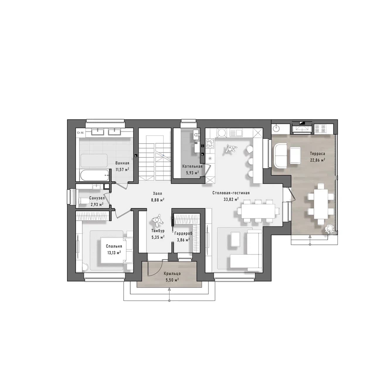 - Площадь: 125 кв. м
